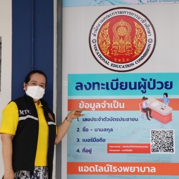ดร.ชมพูนุช บัวบังศร ผู้อำนวยการสถาบันการอาชีวศึกษากรุงเทพมหานคร เข้าร่วมพิธีเปิดสถานที่กักกันตัวในชุมชน (Community Isolation) สำหรับแยกผู้ติดเชื้อไวรัสโคโรนา 2019 (Covid-19)