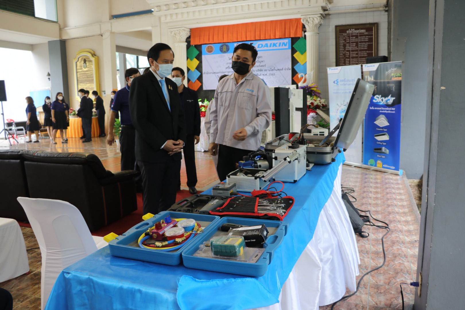 นายมณฑล ภาคสุวรรณ์ รองเลขาธิการคณะกรรมการการอาชีวศึกษา เป็นประธานในพิธีเปิดการฝึกอบรมหลักสูตร การซ่อมบำรุงและการแก้ไขปัญหาเครื่องปรับอากาศระบบอินเวอร์เตอร์ สำนักงานคณะกรรมการการอาชีวศึกษา ร่วมกับ บริษัท สยามไดกิ้นเซลล์ จำกัด เมื่อวันที่ 17-18 กุมภาพันธ์ 2565 ณ วิทยาลัยเทคนิคราชสิทธาราม โดยนายสุรพิล จิรวรเดช รองผู้อำนวยการสถาบันการอาชีวศึกษากรุงเทพมหานคร ร่วมเป็นเกียรติในโครงการ