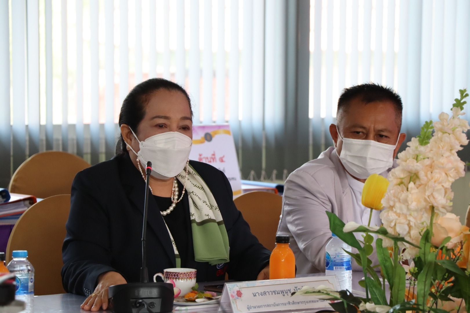 ดร.ชมพูนุช บัวบังศร ผู้อำนวยการสถาบันการอาชีวศึกษากรุงเทพมหานคร และนางสุวรรณา ลิ้นทอง ผู้ช่วยผู้อำนวยการสถาบันการอาชีวศึกษากรุงเทพมหานคร เข้าร่วมรับฟังการประเมินสถานศึกษาเพื่อรับรางวัลพระราชทาน ประจำปีการศึกษา 2564 วิทยาลัยเทคนิคราชสิทธาราม เมื่อวันที่ 9 มีนาคม 2565 ณ วิทยาลัยเทคนิคราชสิทธาราม