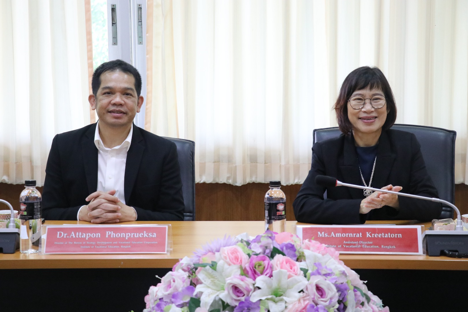 เมื่อวันที่ 12 กันยายน 2568 สถาบันการอาชีวศึกษากรุงเทพมหานคร จัดฝึกอบรมวิชาชีพพวงมาลัยชำร่วย (Souvenir Garlands) ให้กับครู และนักเรียนจากวิทยาลัยอาชีวศึกษาผังเมืองเซี่ยงไฮ้ สาธารณรัฐประชาชนจีน เพื่อส่งเสริมความเข้าใจและแลกเปลี่ยนเรียนรู้ด้านวัฒนธรรมไทย สามารถปรับตัวเข้ากับสังคมไทยได้ ภายใต้ความร่วมมือการอาชีวศึกษาไทย-จีน ระหว่าง สถาบันการอาชีวศึกษากรุงเทพมหานคร วิทยาลัยอาชีวศึกษาเสาวภา และบริษัท ถัง อินเตอร์เนชั่นแนล เอ็ดดูเคชั่น จำกัด ให้การได้รับอย่างอบอุ่นโดยจ่าสิบเอก ดร.สมพร ชูทอง ผู้อำนวยการสถาบันการอาชีวศึกษากรุงเทพมหานคร พร้อมด้วยคณะผู้บริหารสถาบัน และนางอรุณี จักษ์ตรีมงคล ประธานบริษัท ถัง อินเตอร์เนชั่นแนล เอ็ดดูเคชั่น จำกัด โดยมีวิทยากรสอนทำพวงมาลัยชำร่วย จากวิทยาลัยอาชีวศึกษาเสาวภา 2 ท่าน คือ นายจุฑาภัทร คงสุนทร และนายคณิศสร ศิริบุญ
