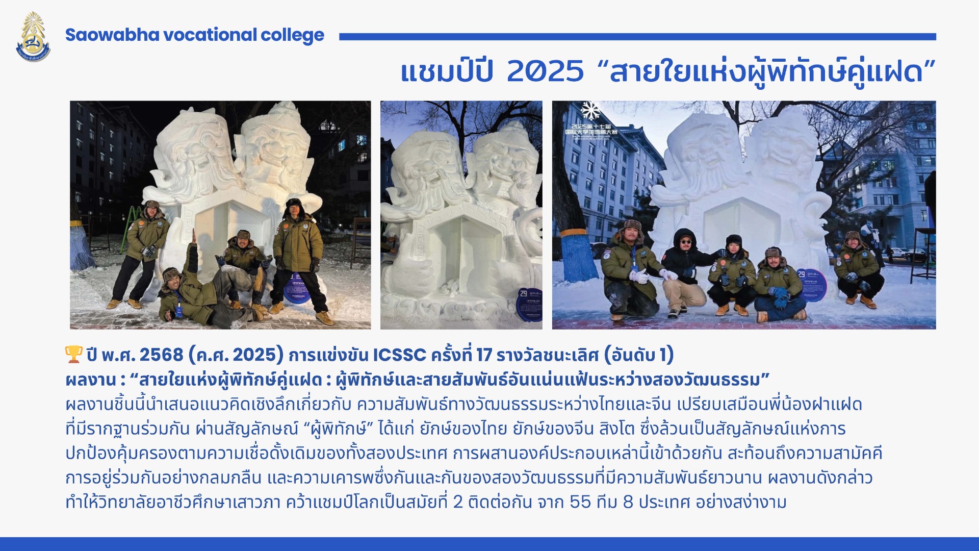 ประธานการประชุมโดย ดร.ศิริพรรณ ชุมนุม นายกสภาสถาบันการอาชีวศึกษากรุงเทพมหานคร พร้อมด้วยคณะกรรมการสภา คณะผู้บริหารสถาบันการอาชีวศึกษากรุงเทพมหานคร และคณะผู้บริหารจากวิทยาลัยในสังกัดสถาบันการอาชีวศึกษากรุงเทพมหานคร การประชุมครั้งนี้มีการอวยพรปีใหม่ในโอกาสขึ้นปีพุทธศักราชใหม่ 2569 การรายงานผลการดำเนินงานปีที่ผ่านมาของสถาบันการอาชีวศึกษากรุงเทพมหานคร การนำเสนอผลการปฏิบัติงานของสถานศึกษาในสังกัดสถาบัน ซึ่งวิทยาลัยอาชีวศึกษาเสาวภา มีผลงานในปี พ.ศ. 2569 ในการแข่งขัน ICSSC ครั้งที่ 18 รางวัลชนะเลิศ (อันดับ 1) สร้างสถิติแชมป์ 3 ปีซ้อน ด้วยผลงาน “เทพีแห่งชีวิต-ผู้ประทานน้ำ” ผลการทดสอบมาตรฐานภาษาอังกฤษ ด้วยแบบทดสอบ TOEIC ประจำปีการศึกษา 2568 ซึ่งในปีการศึกษานี้ มีนักศึกษาสอบได้คะแนนสูงสุด 650 คะแนน