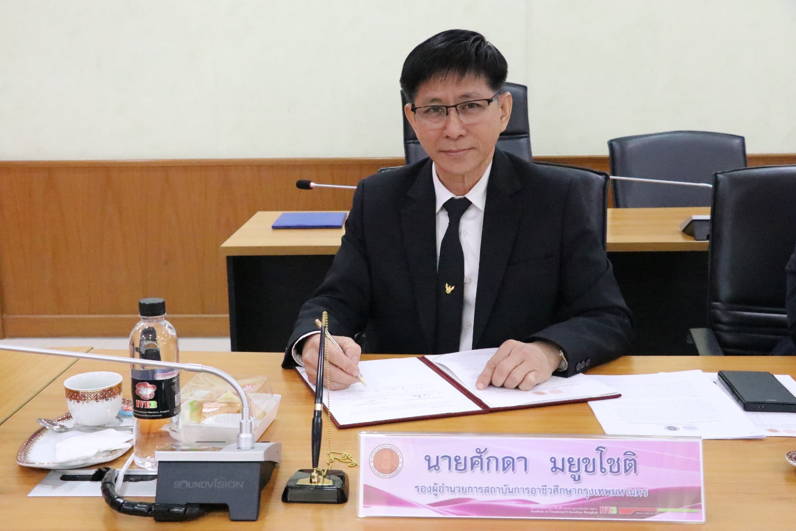 - ผู้ลงนามฝ่ายสถาบันการอาชีวศึกษากรุงเทพมหานคร จ่าสิบเอก ดร.สมพร ชูทอง ผู้อำนวยการสถาบัน