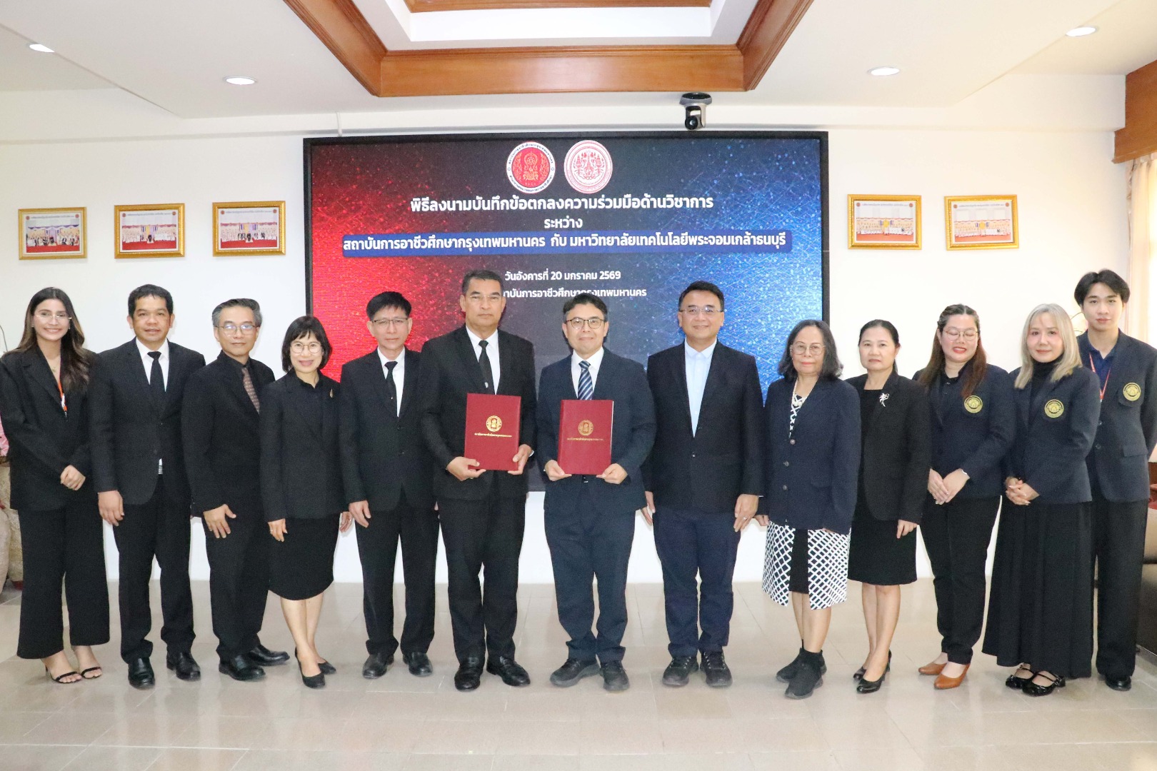 พิธีลงนามความร่วมมือด้านวิชาการ ระหว่าง สถาบันการอาชีวศึกษากรุงเทพมหานคร กับ มหาวิทยาลัยเทคโนโลยีพระจอมเกล้าธนบุรี เมื่อวันที่ 20 มกราคม 2569 ณ ห้องประชุมชั้น 3 สถาบันการอาชีวศึกษากรุงเทพมหานคร
