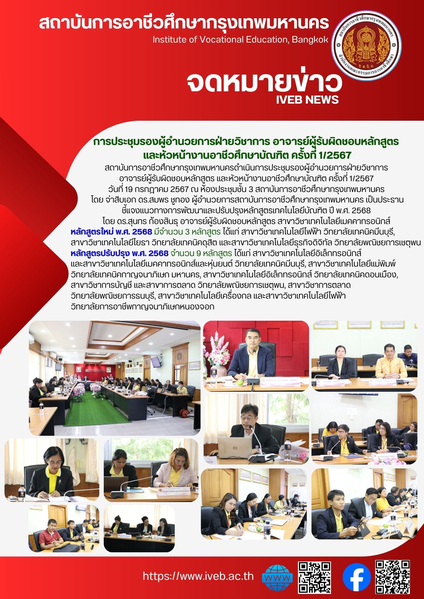 การอบรมเชิงปฏิบัติการพัฒนาและปรับปรุงหลักสูตรระดับปริญญาตรี สายเทคโนโลยีหรือสายปฏิบัติการหลักสูตรใหม่ พ.ศ. 2568 และหลักสูตรปรับปรุง พ.ศ. 2568 14 ส.ค. 2567