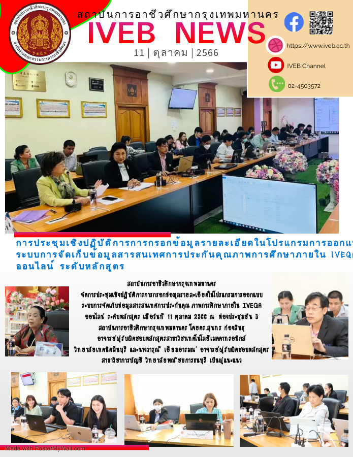 การประชุมเชิงปฏิบัติการการกรอกข้อมูลรายละเอียดในโปรแกรมการออกแบบ ระบบการจัดเก็บข้อมูลสารสนเทศการประกันคุณภาพการศึกษาภายใน IVEQA ออนไลน์ ระดับหลักสูตร 16 ต.ค. 2566